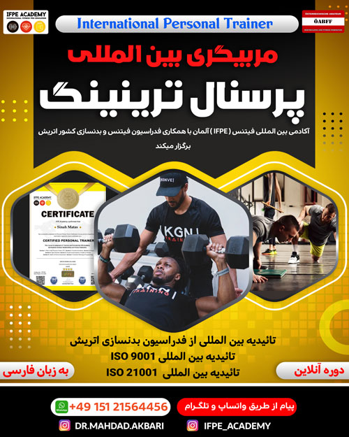 آکادمی بین المللی IFPE آلمان مجری برگزارکننده کلاسهای مربیگری بین المللی فیتنس در کشورهای اتحادیه اروپا (آلمان و اتریش) دوره مربیگری بین المللی پرسنال ترینینگ را به صورت آنلاین برگزار میکند.